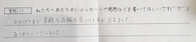 おかげさまで素敵な指輪を見つける事が出来ました。