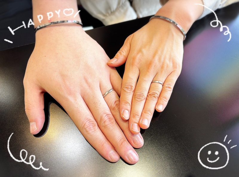 お揃いで身に着けられていたブレスレットとの相性もぴったりで、シンプルでスタイリッシュなデザインが、お二人の雰囲気によくお似合いでした👍✨